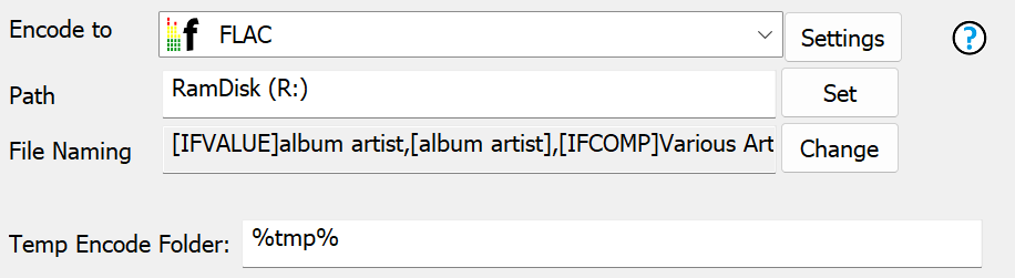 The Temp Encode Folder would normally be %tmp% to use the system temporary folder.
