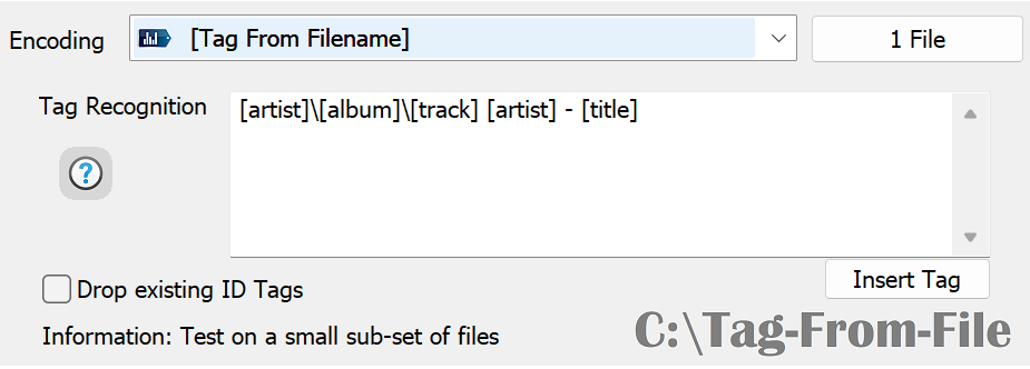 Tag Recognition this is where the format of the filenames is entered, for example audio files are in the format: